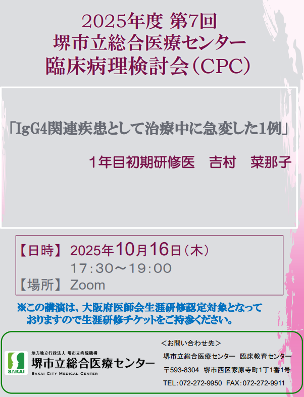 イベント | 2025年度 第7回 堺市立総合医療センター 臨床病理検討会(CPC) |